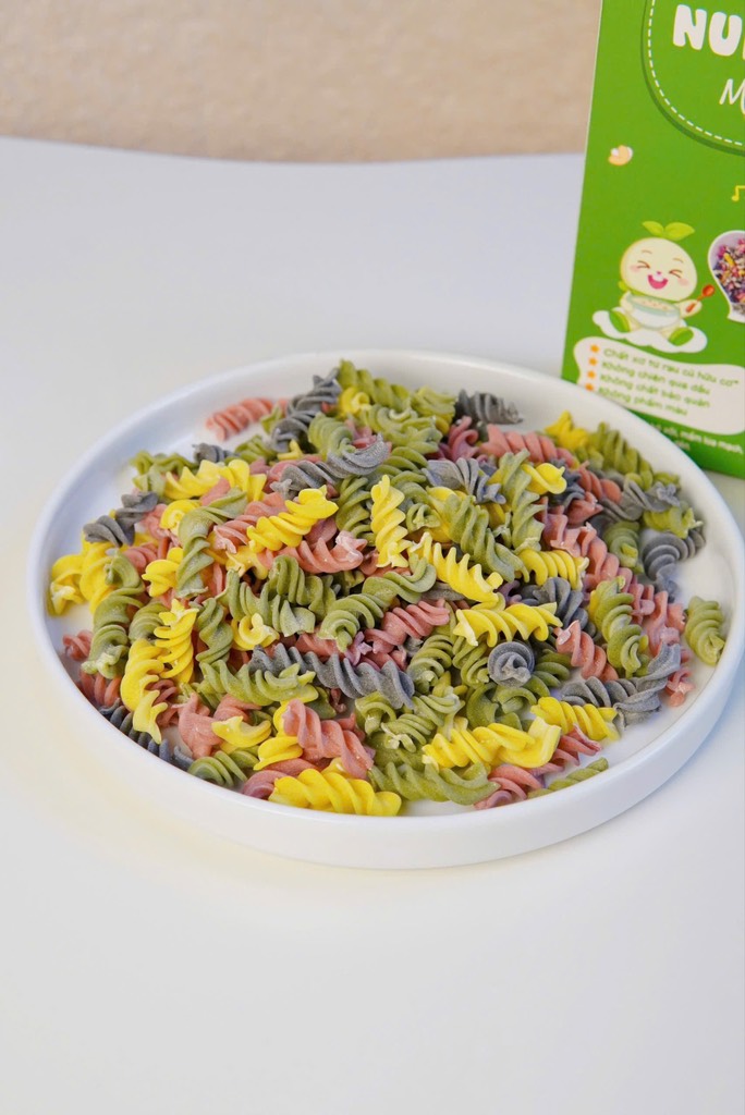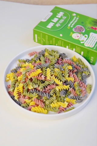 Được làm từ nguyên liệu xanh, sạch, giữ nguyên chất xơ từ rau củ tươi và bột sắn dây thay thế một phần cho bột mì, tạo nên nui rau củ vừa mềm, vừa dai, bé tập nhai vui vẻ!