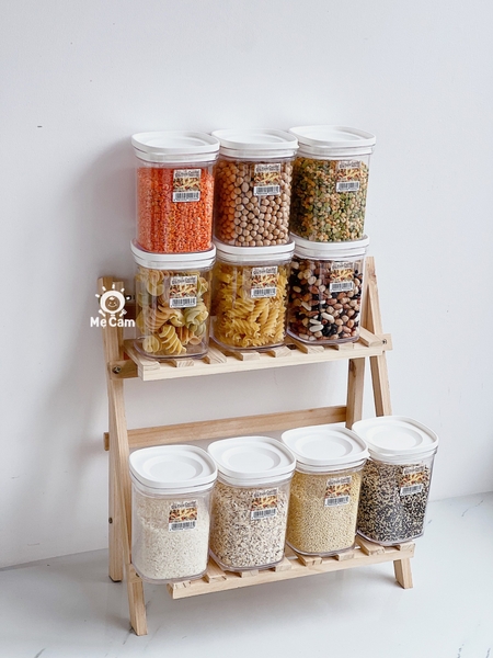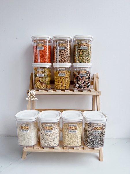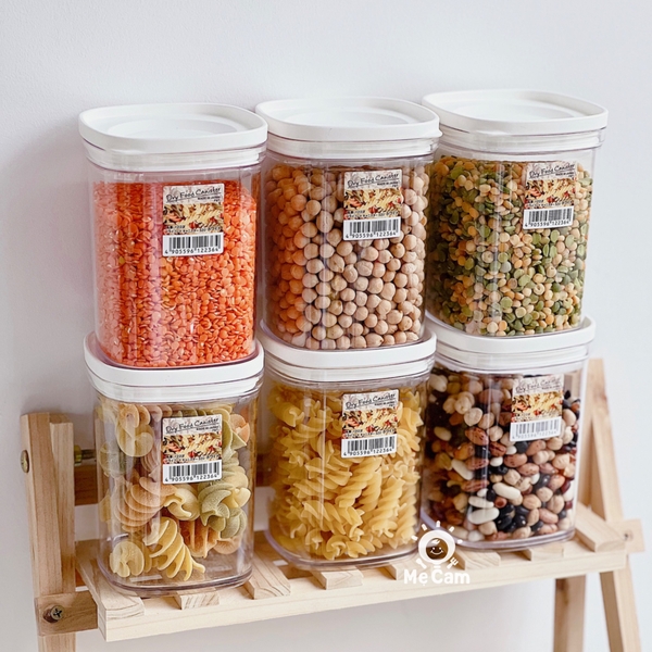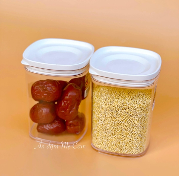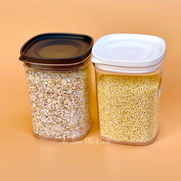 - Mẹ dùng để trữ các loại hạt, bột, nui, mì, bánh kẹo,... cho bé