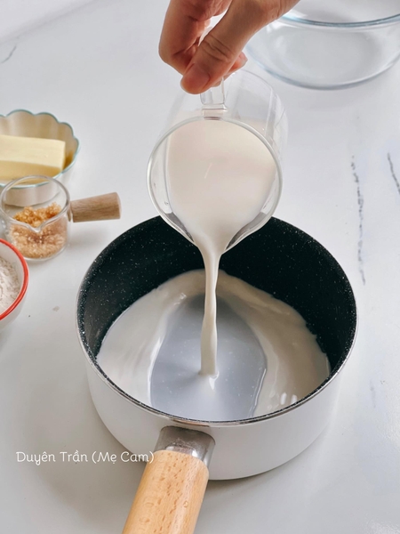 Tắt bếp. Thêm 110-120g bột mì